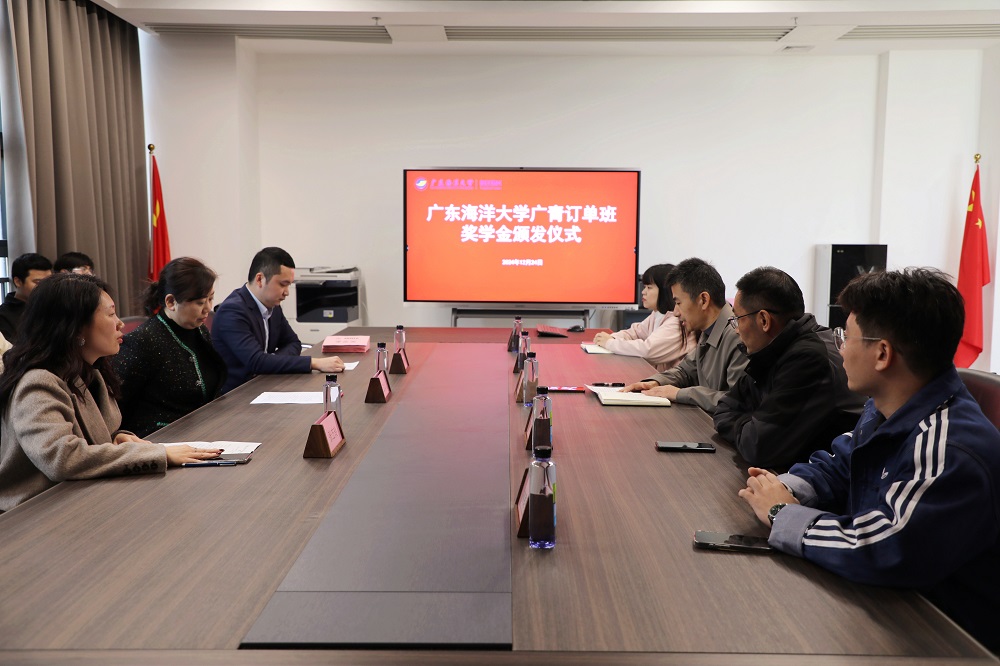 12月24日,广东海洋大学广青订单班奖学金颁发仪式在材料科学与工程学院会议室举行。广东广青金属科技有限公司党委副书记、工会主席王大庆,材料科学与工程学院党总支书记李毅、副院长尹冬松参加了活动。
