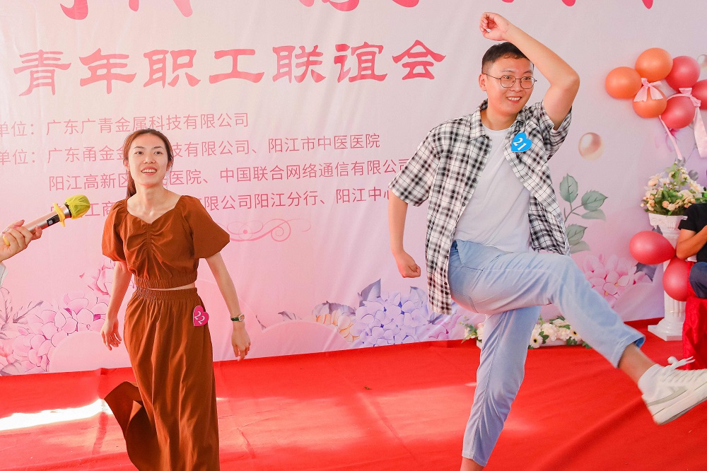 浓情七月,美好如约。为凝聚广大未婚青年职工奋进新征程、追求幸福生活的正能量,让更多青年职工扎根企业,7月22日,广东广青金属科技有限公司联合广东甬金、市中医医院、区人民医院、联通阳江分公司、工行阳江支行、华邑酒店举办了“建功新时代 携手向未来”主题青年职工联谊会,吸引了近100名单身男女青年职工参与。