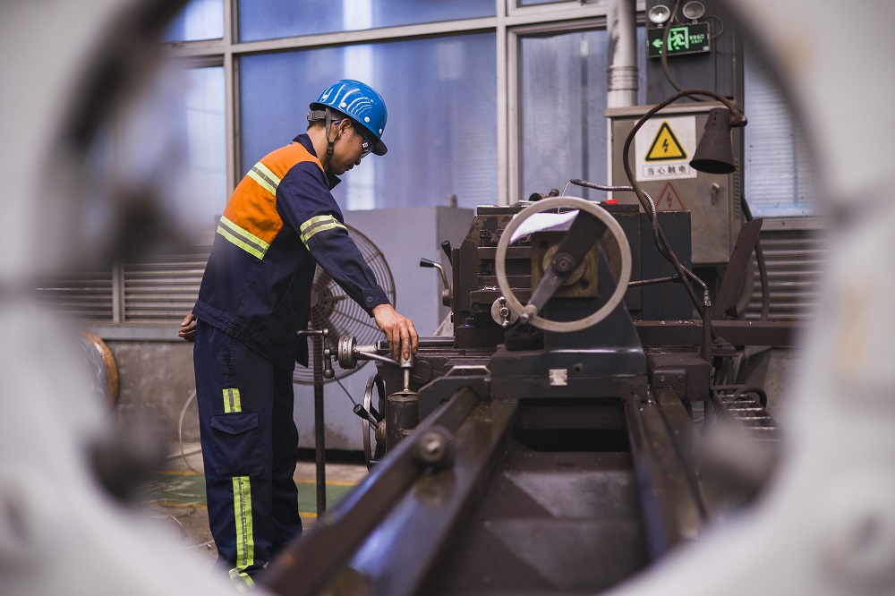 车工项目的比赛对于车削加工的精度有着极高的要求,选手们根据图纸仔细测量、迅速调整刀具,熟练操作车床,精准下刀,突出专业魅力。